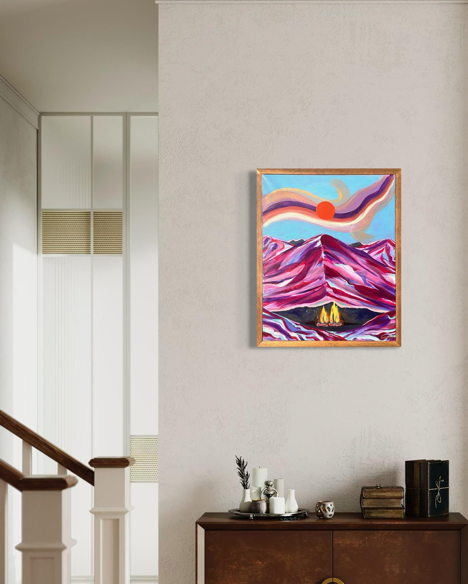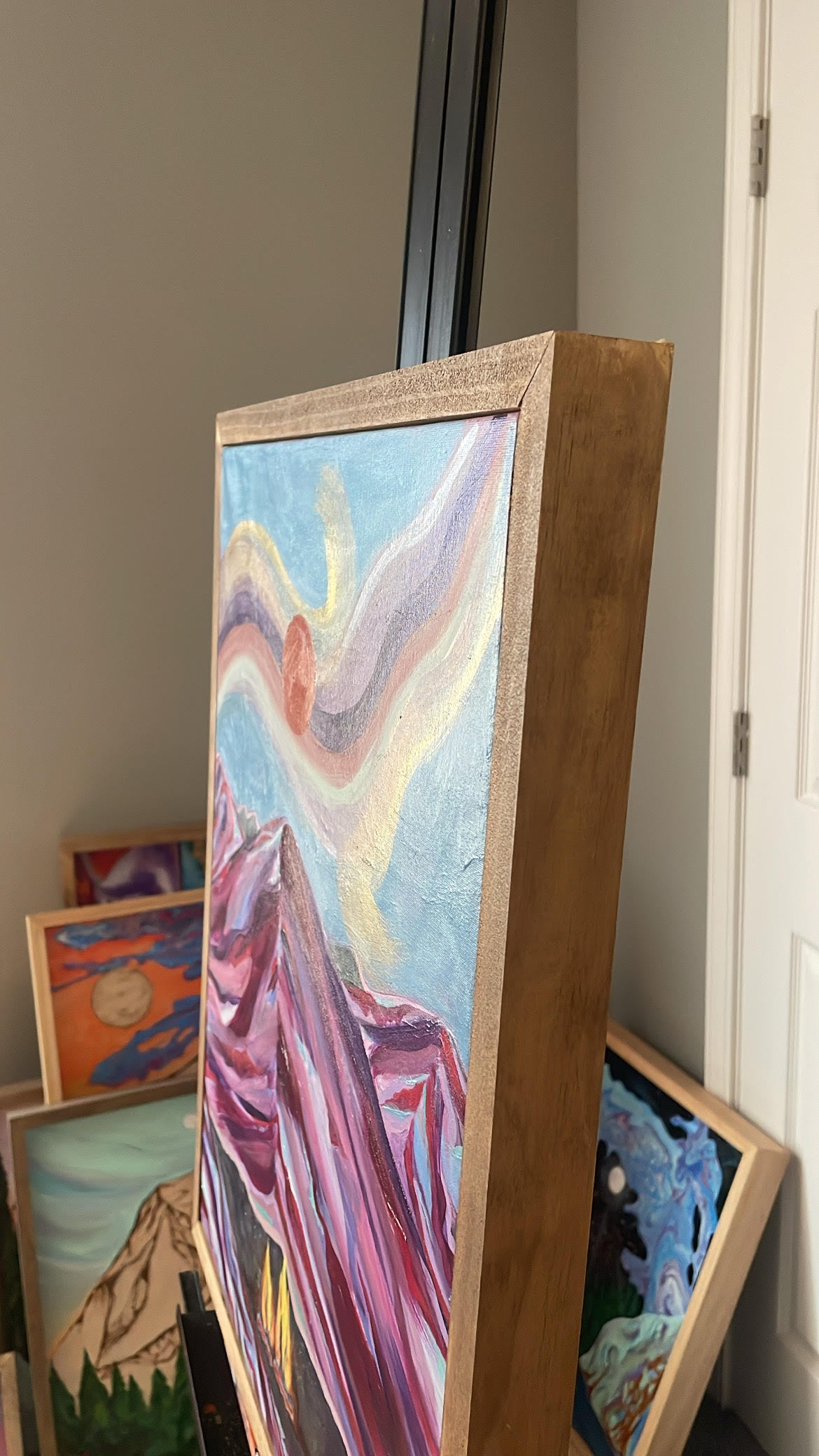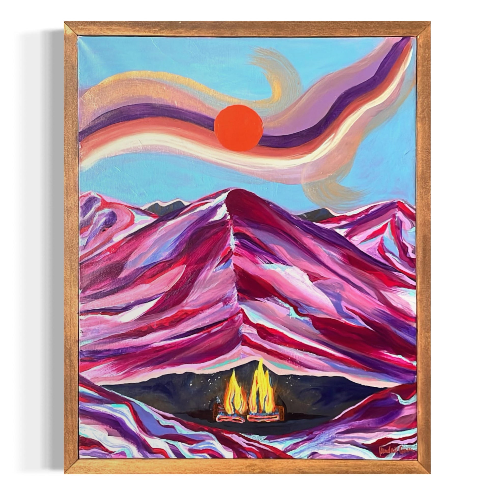The Story behind the Piece: From the glowing sun during smokey days. Recently here in Bend, Oregon we've experienced quite a bit of wild fires this summer. Although it is scary not knowing the damage they can inflict, I can't help but admire the neon colors that reflects off the sun. Bright oranges and pinks depending on the smoke. Makes something beautiful during something not so beautiful.