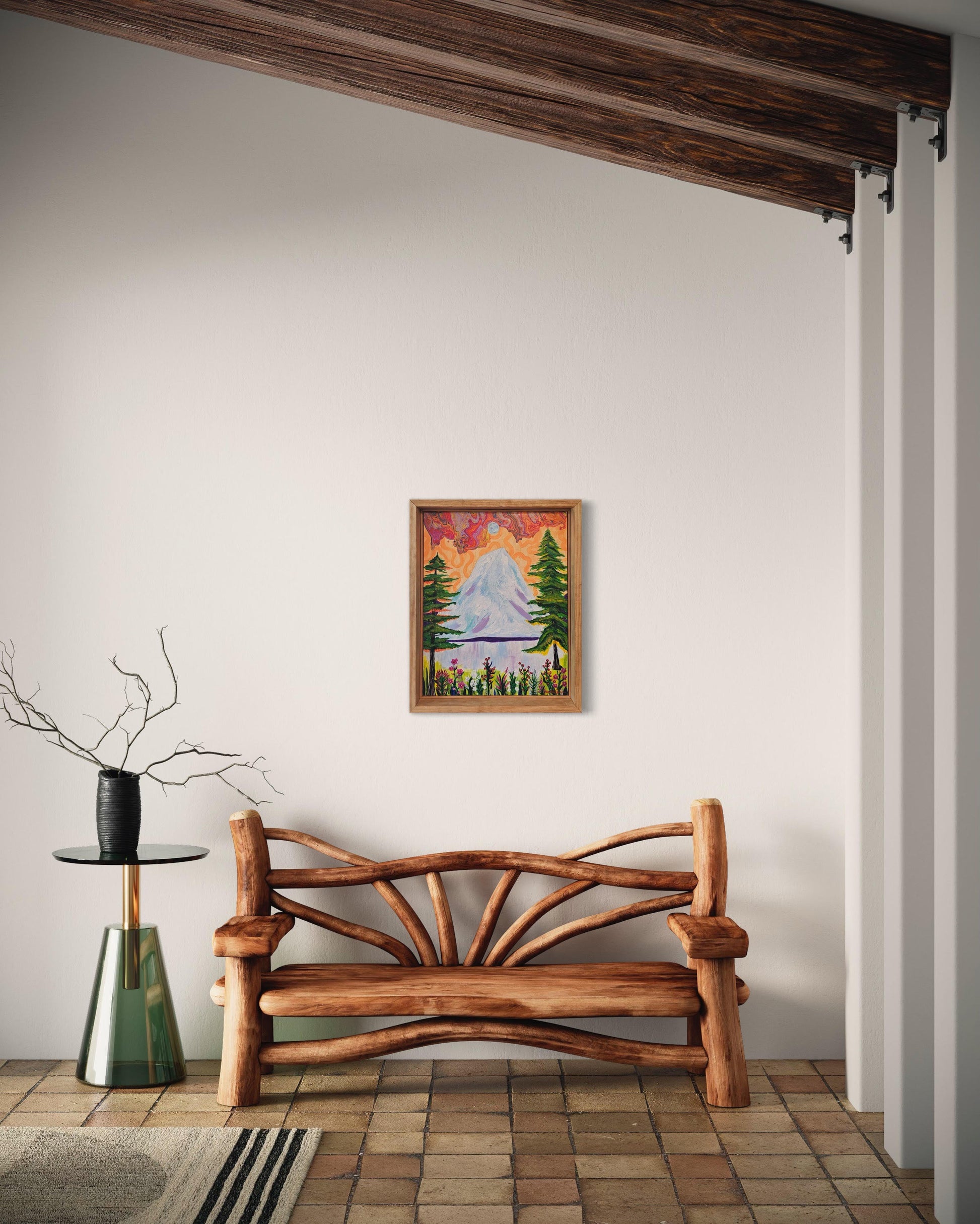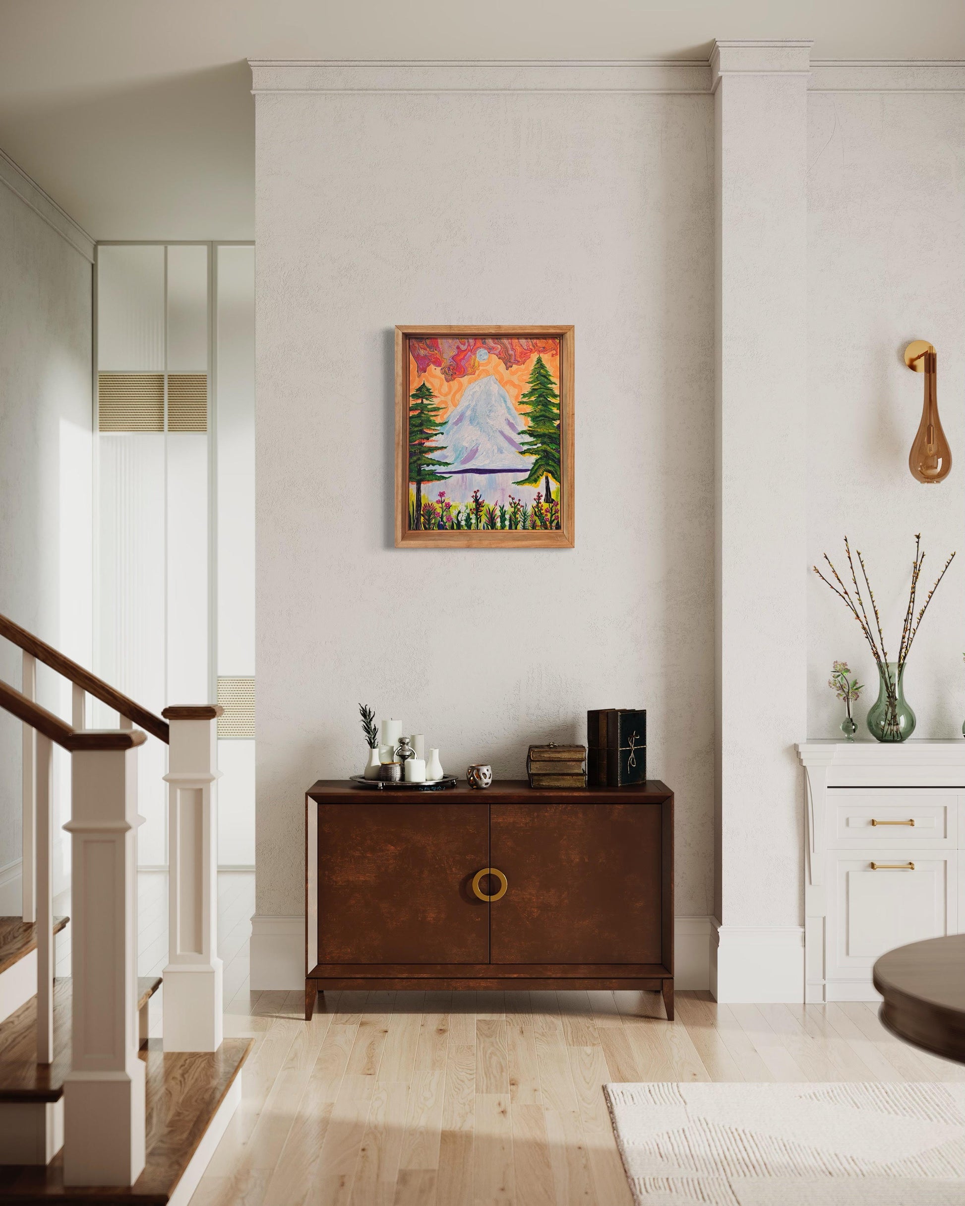 Framing: Hand-made Pine frames stained with Natural wood color.