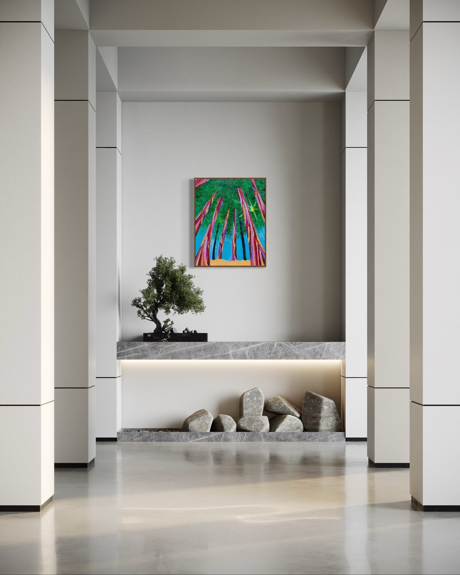 High-Quality, Museum grade fine art print of "Redwood Dreams". Vivid colors to emphasize thre deep reds and brown colors of Redewood Tree bark. while highlighting their magnificence. There's something calming and friendly about gigantic trees... maybe the knowledge that they've been here for so long, have seen so much and shelter us from the storm even still. Inspired by Redwood Trees that sprinkle along the coast of California.