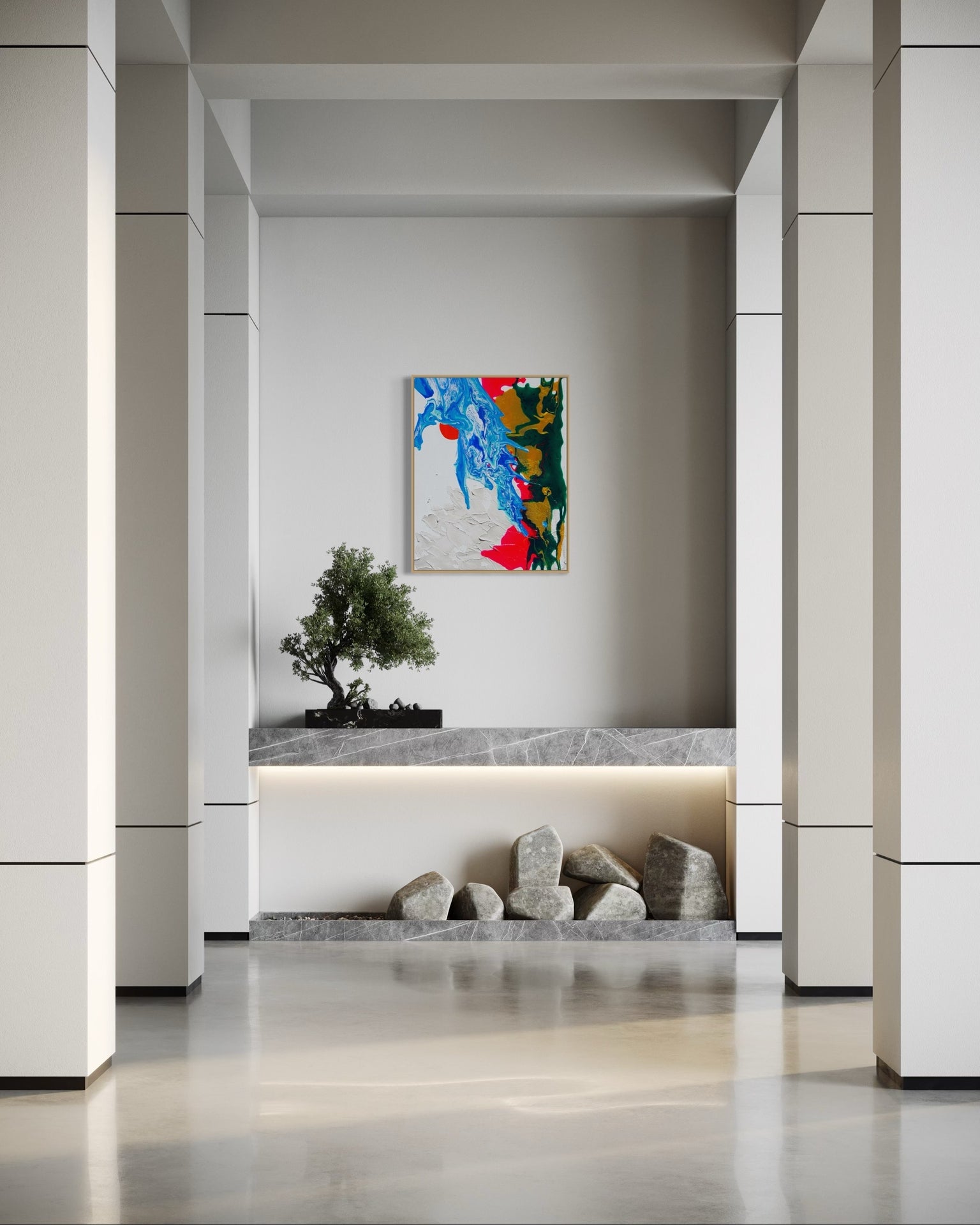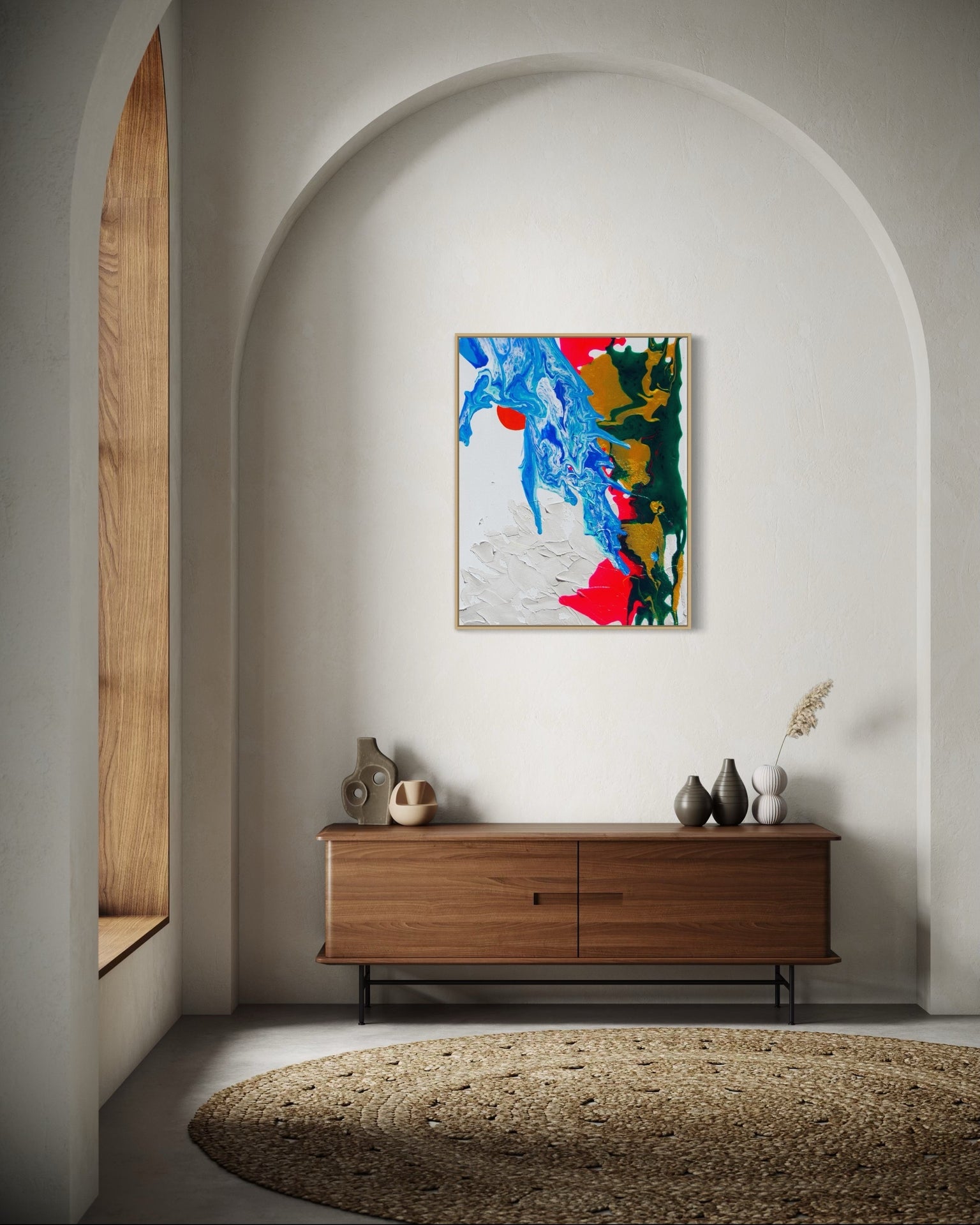 High-Quality, Museum grade fine art print of "Tidal Wave". Depicting our powerful and medicinal oceans, using textured paint and acrylic pouring to represent the strength and the fluidity of powerful waves. Colors of green, gold, and pink to represent the surrounding land and sunsets.