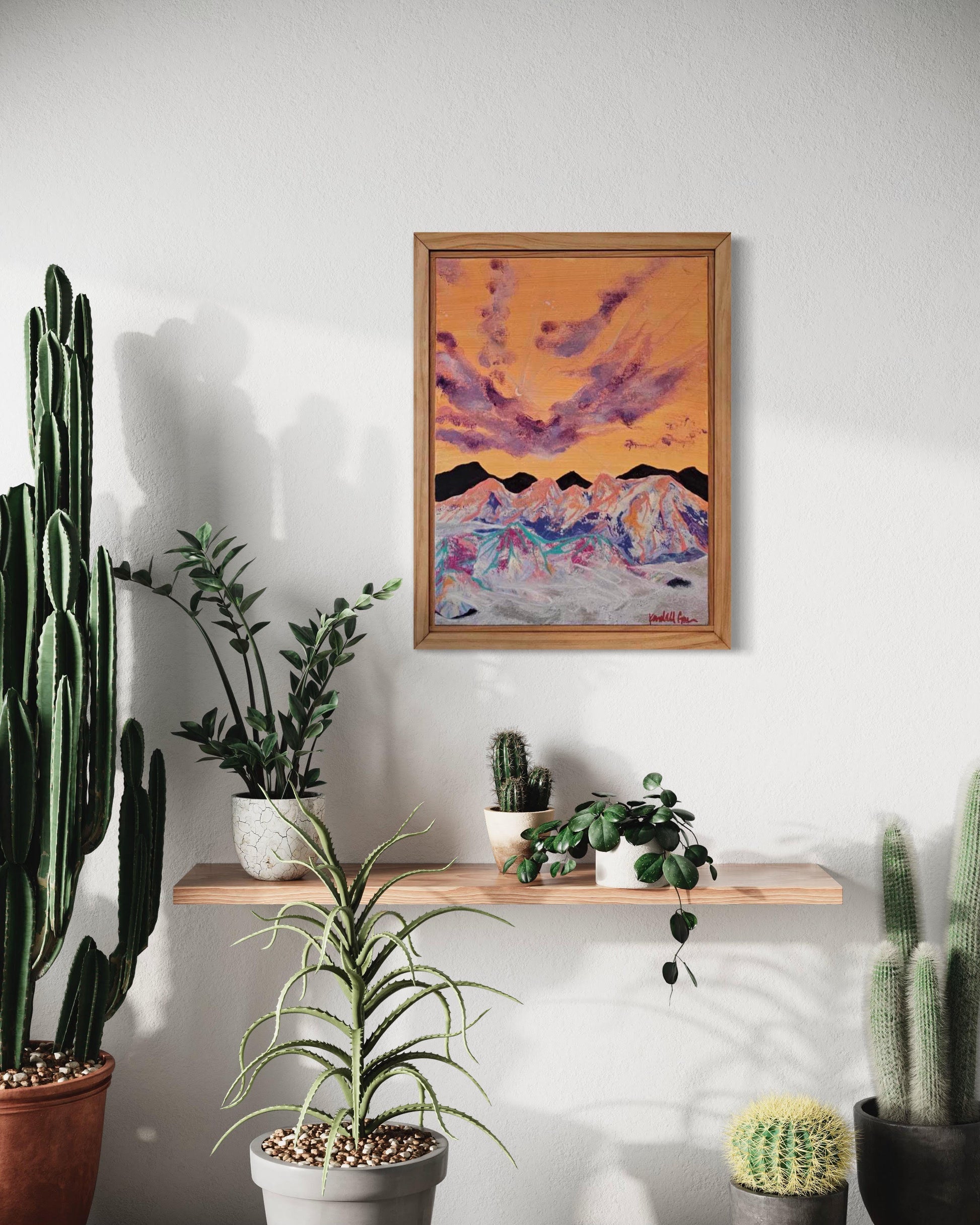 The Story behind the Piece: My favorite season of the year is during the transition from Fall to Winter. Everything feels like it is heightening yet settling for the new season. Colors are always most impressive during this time of year, which inspired me to use multiple colors across the mountain scapes. Vibrant colors used on canvas to emphasize sharp lines and bring fun color to a home space or office. Pairs so well with other art pieces and furniture.